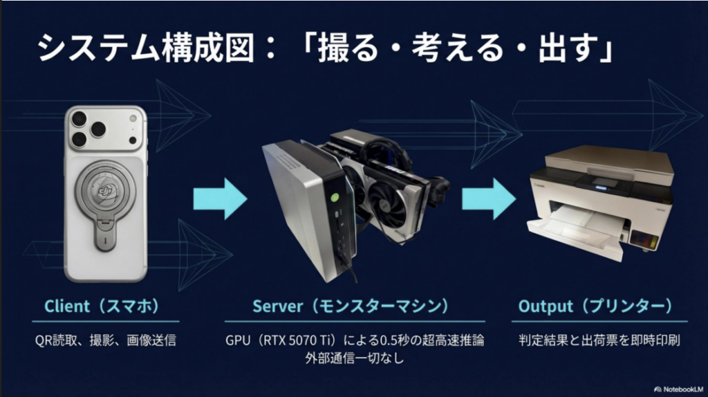 今回の実習では、**「最新のAI技術を使って、現場の出荷検品作業を自動化するシステム」**の開発に取り組みました。